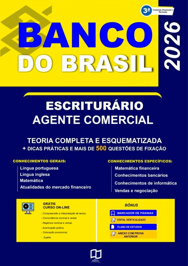 Estude para o Concurso do Banco do Brasil com um material atualizado de acordo com o último Edital oficial para o cargo de Escriturário – Agente Comercial.