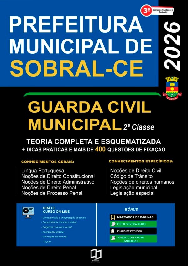 Estude para o Concurso da Prefeitura de Sobral-CE com um material atualizado de acordo com o último Edital oficial para o cargo de Guarda Municipal