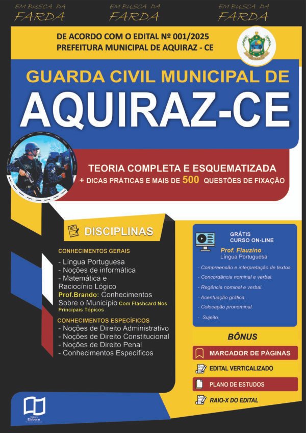 Estude para o Concurso da Prefeitura Municipal de AQUIRAZ – CE com um material de acordo com o Edital oficial para o cargo de Guarda Civil Municipal de Aquiraz