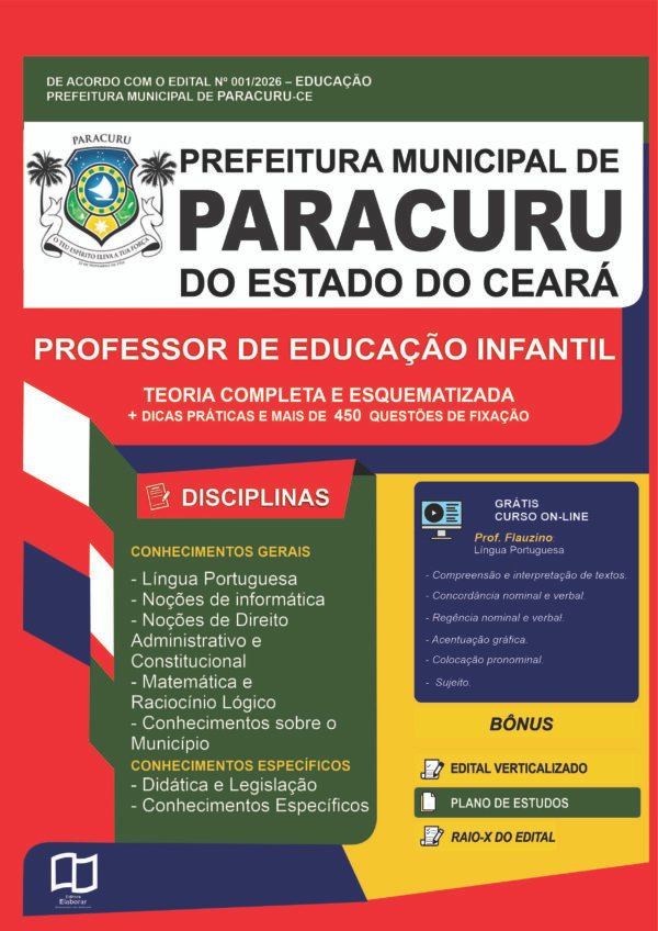 Estude para o Concurso da PREFEITURA MUNICIPAL DE PARACURU – CE com um material de acordo com o Edital oficial para o cargo de PROFESSOR DE EDUCAÇÃO INFANTIL